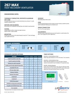Committed to high performance units, the Lifebreath 267 MAX is designed for mid to large sized homes requiring ultra-efficient ventilation in a compact size.
